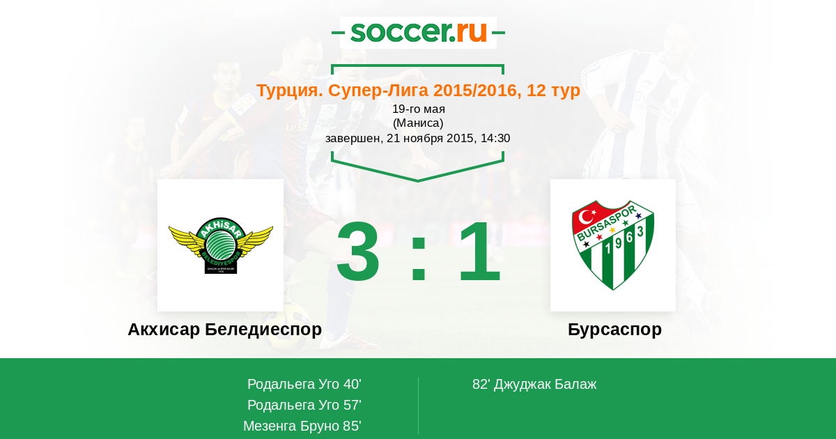 Протокол матча Акхисар Беледиеспор против Бурсаспор