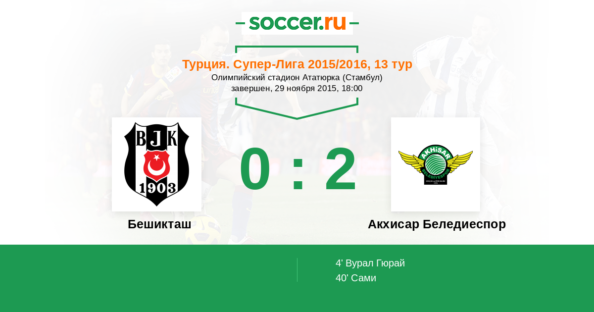 Протокол матча Бешикташ против Акхисар Беледиеспор
