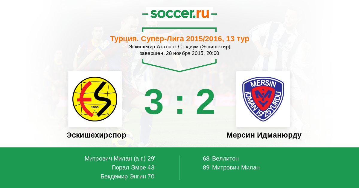 Протокол матча Эскишехирспор против Мерсин Идманюрду