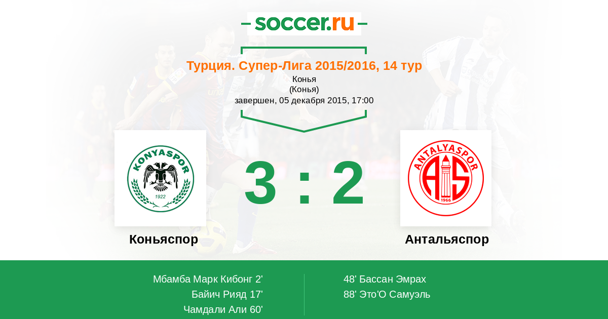 Протокол матча Коньяспор против Антальяспор