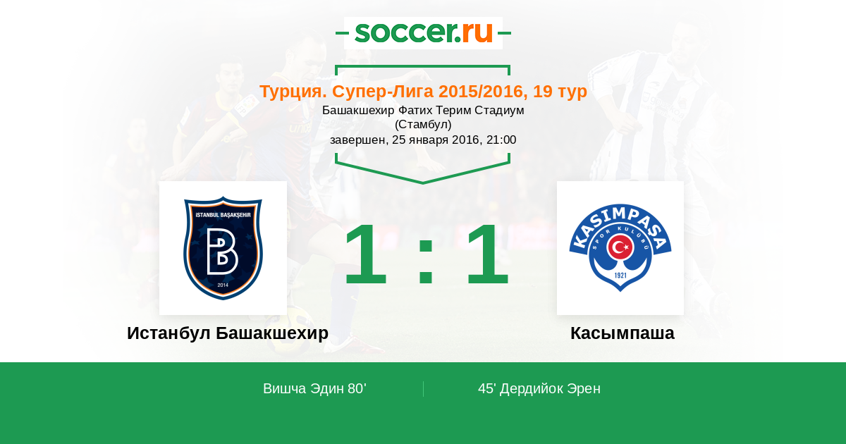 Протокол матча Истанбул Башакшехир против Касымпаша