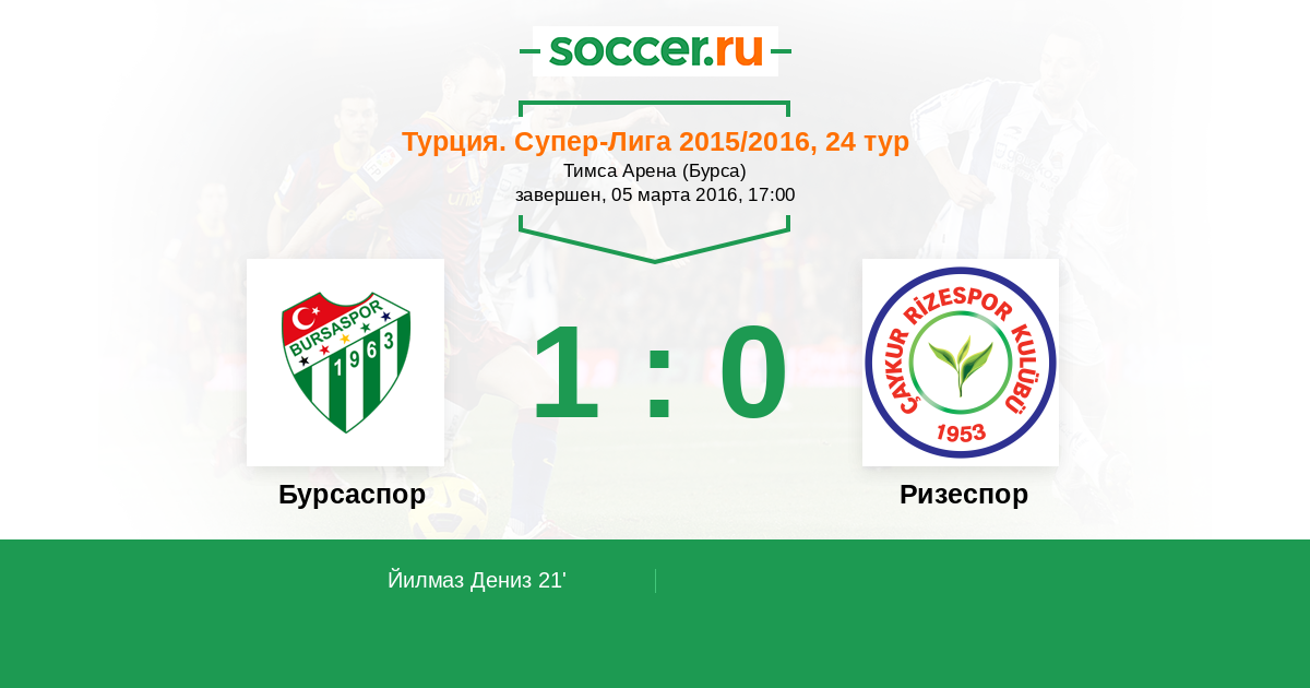 Протокол матча Бурсаспор против Ризеспор