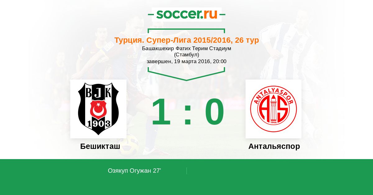 Протокол матча Бешикташ против Антальяспор