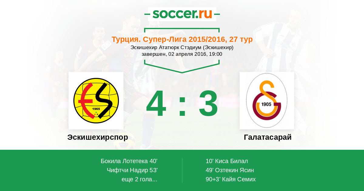 Протокол матча Эскишехирспор против Галатасарай