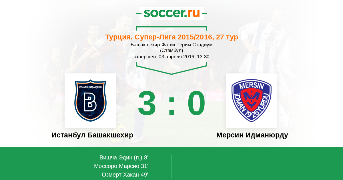 Протокол матча Истанбул Башакшехир против Мерсин Идманюрду