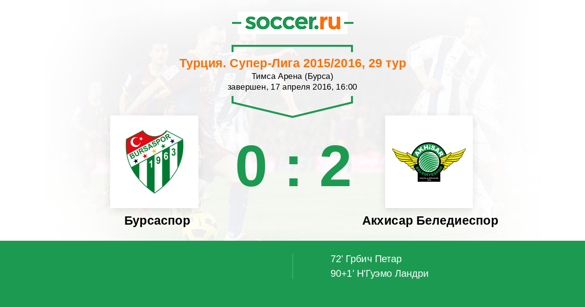 Протокол матча Бурсаспор против Акхисар Беледиеспор