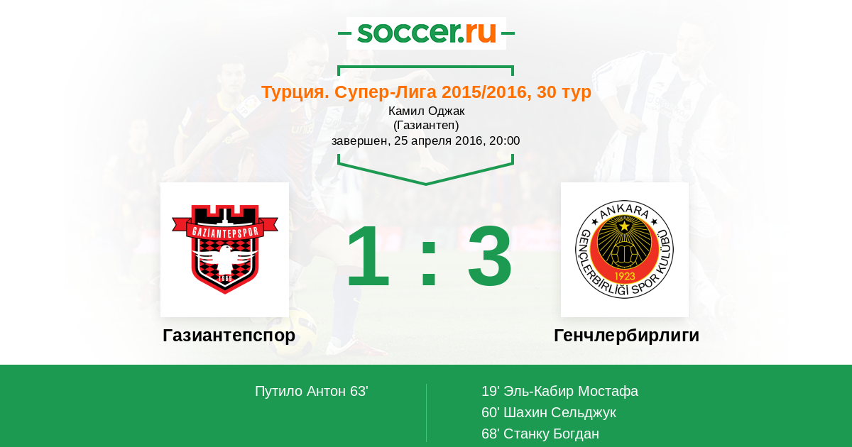 Протокол матча Газиантепспор против Генчлербирлиги