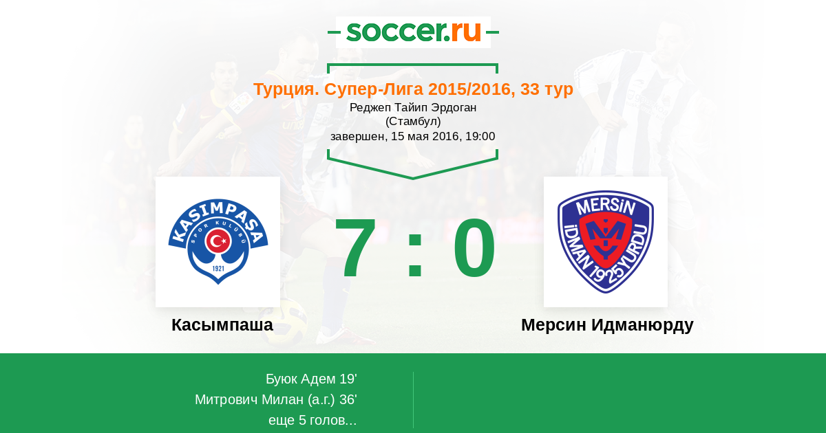 Протокол матча Касымпаша против Мерсин Идманюрду