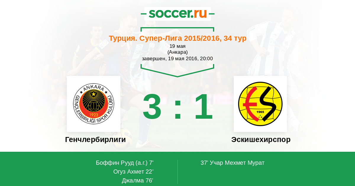 37’ 2:1 Учар Мехмет Мурат