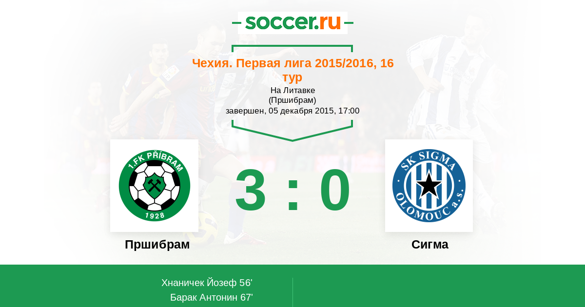 Протокол матча Пршибрам против Сигма