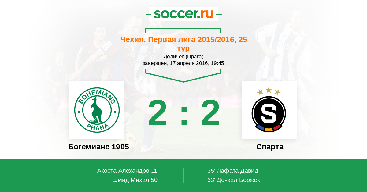 Протокол матча Богемианс 1905 против Спарта