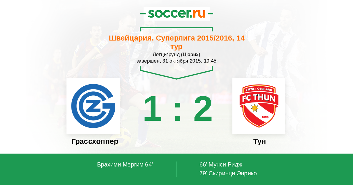 Протокол матча Грассхоппер против Тун