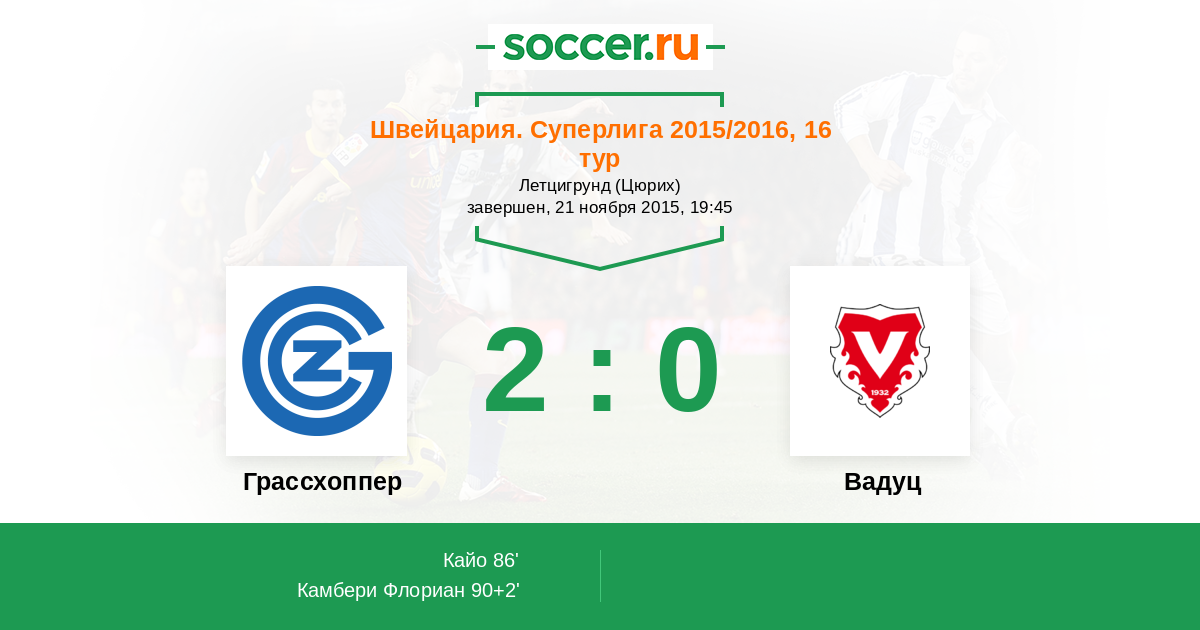 Протокол матча Грассхоппер против Вадуц