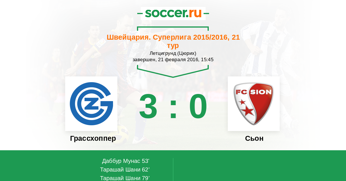Протокол матча Грассхоппер против Сьон