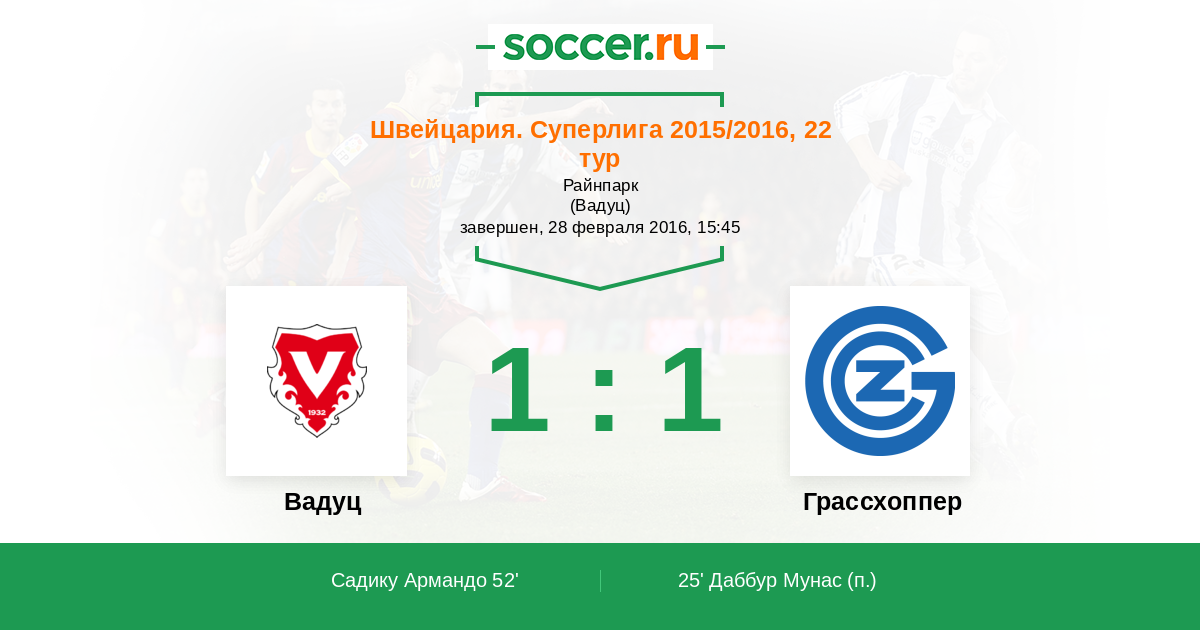 Протокол матча Вадуц против Грассхоппер