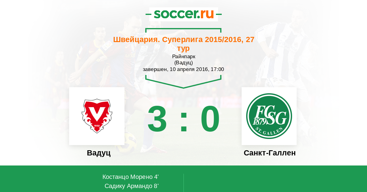 Протокол матча Вадуц против Санкт-Галлен