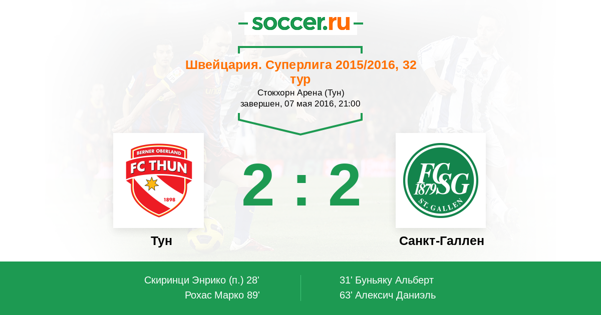 Протокол матча Тун против Санкт-Галлен