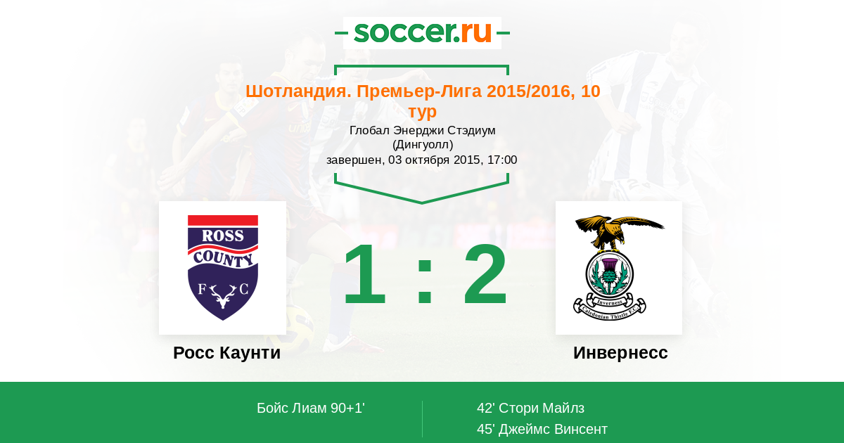 Протокол матча Росс Каунти против Инвернесс