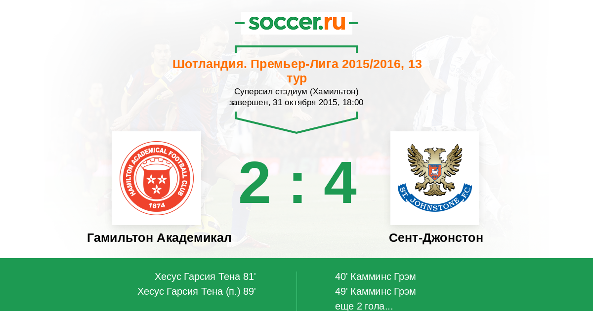 Протокол матча Гамильтон Академикал против Сент-Джонстон