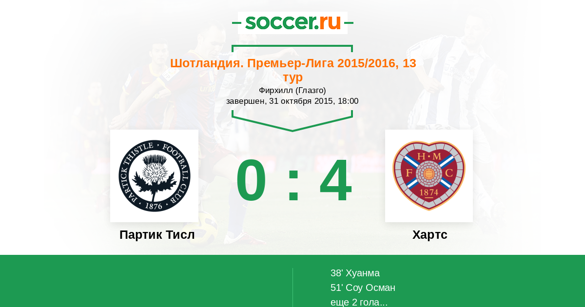 Протокол матча Партик Тисл против Хартс