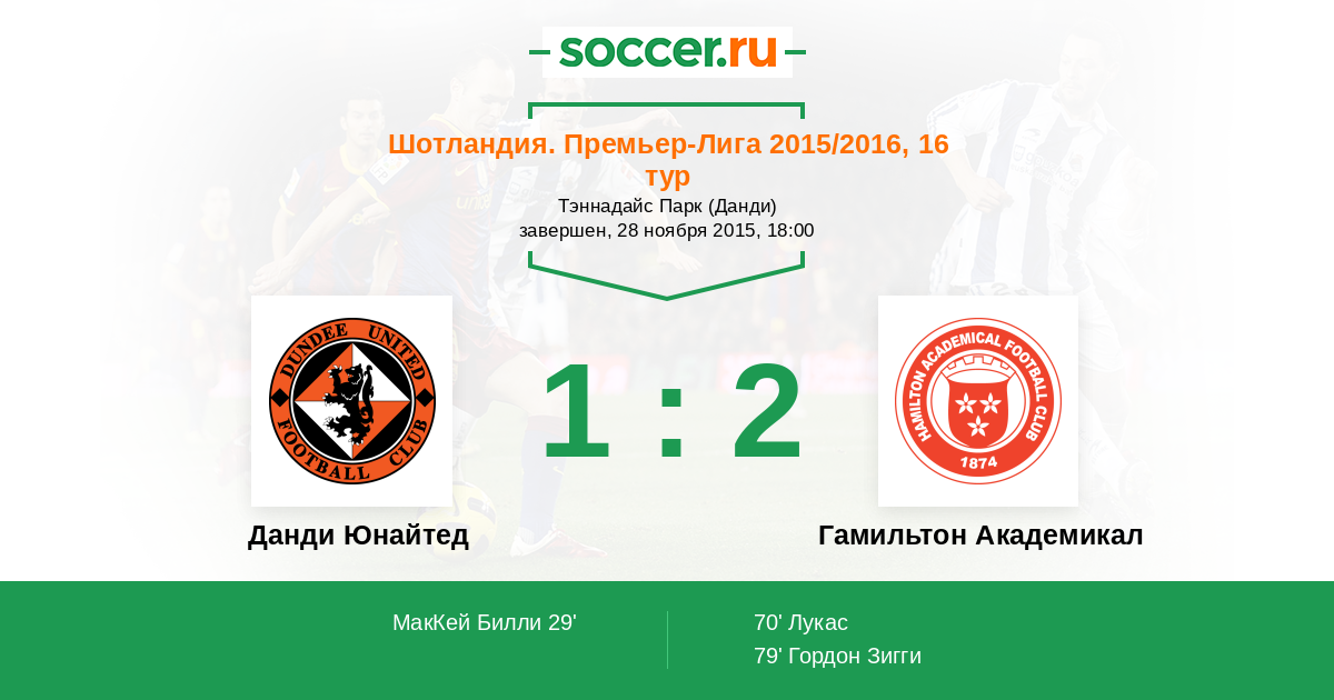 Протокол матча Данди Юнайтед против Гамильтон Академикал