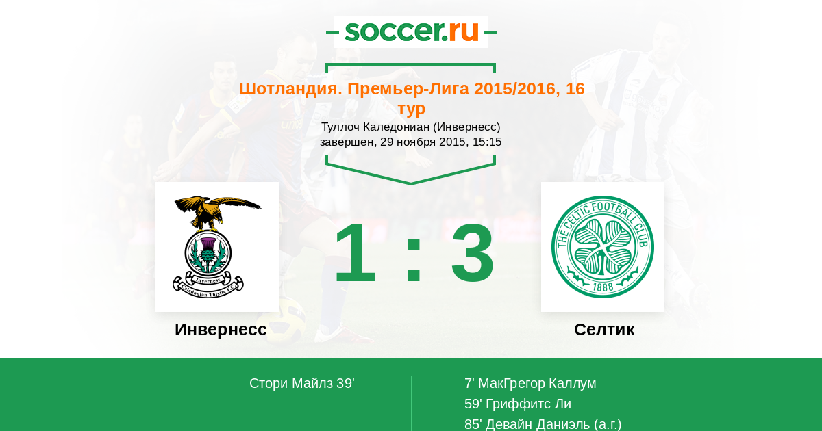 Протокол матча Инвернесс против Селтик