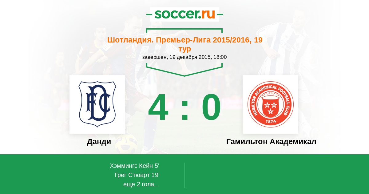 19' (2:0) Грег Стюарт (7) (Харкинс Гари (29))