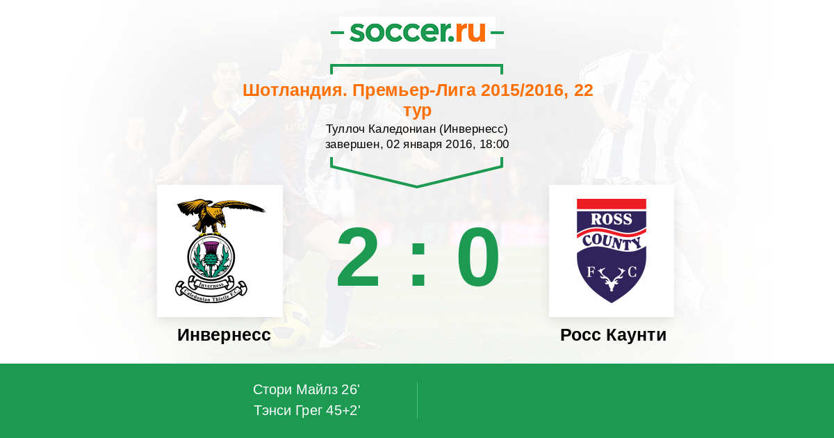 Протокол матча Инвернесс против Росс Каунти