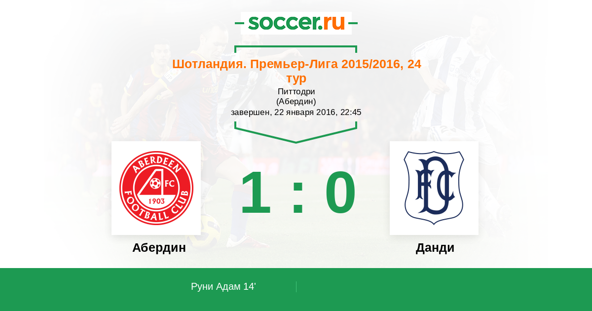 14' (1:0) Руни Адам (9) (Хэйес Джонни (11))