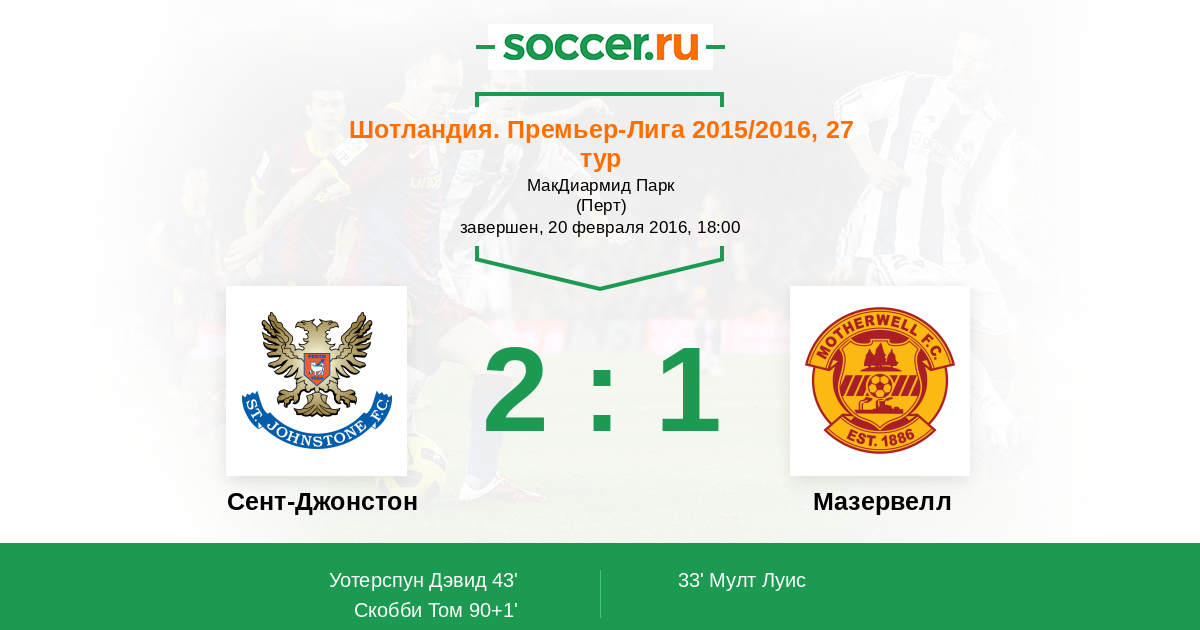 33' (0:1) Мулт Луис (20) (МакФадден Джеймс (24))