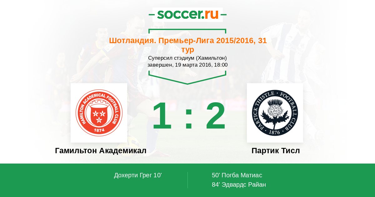 Протокол матча Гамильтон Академикал против Партик Тисл