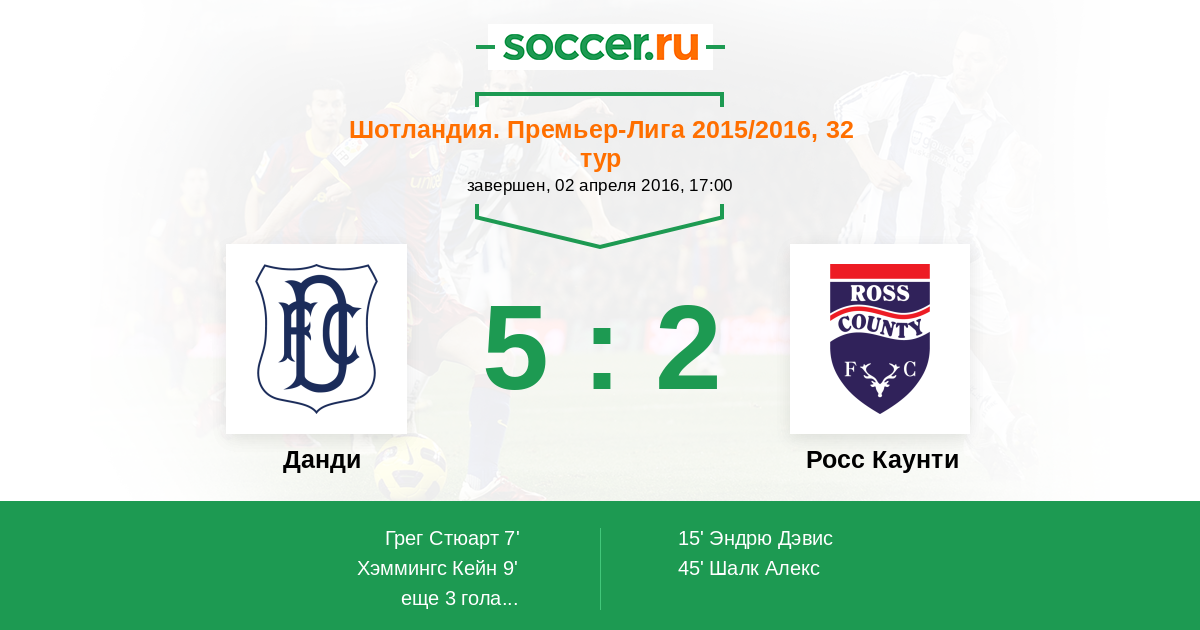 7' (1:0) Грег Стюарт (7) (Хэммингс Кейн (15))