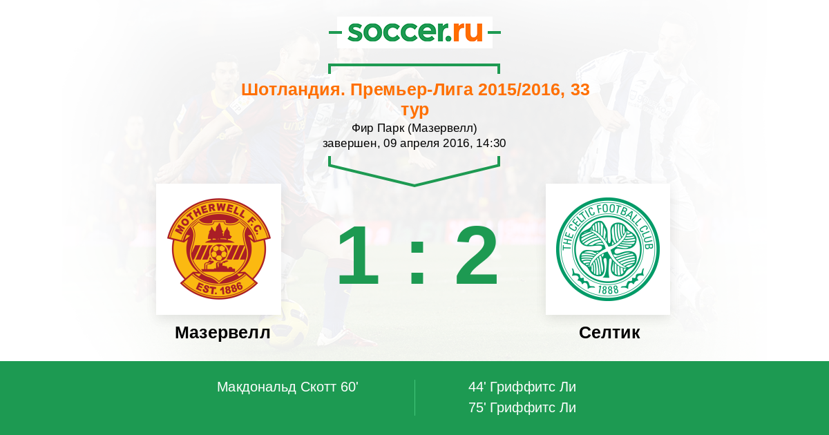 Гол75' (1:2) Гриффитс Ли (9) (Тирни Киран (63))