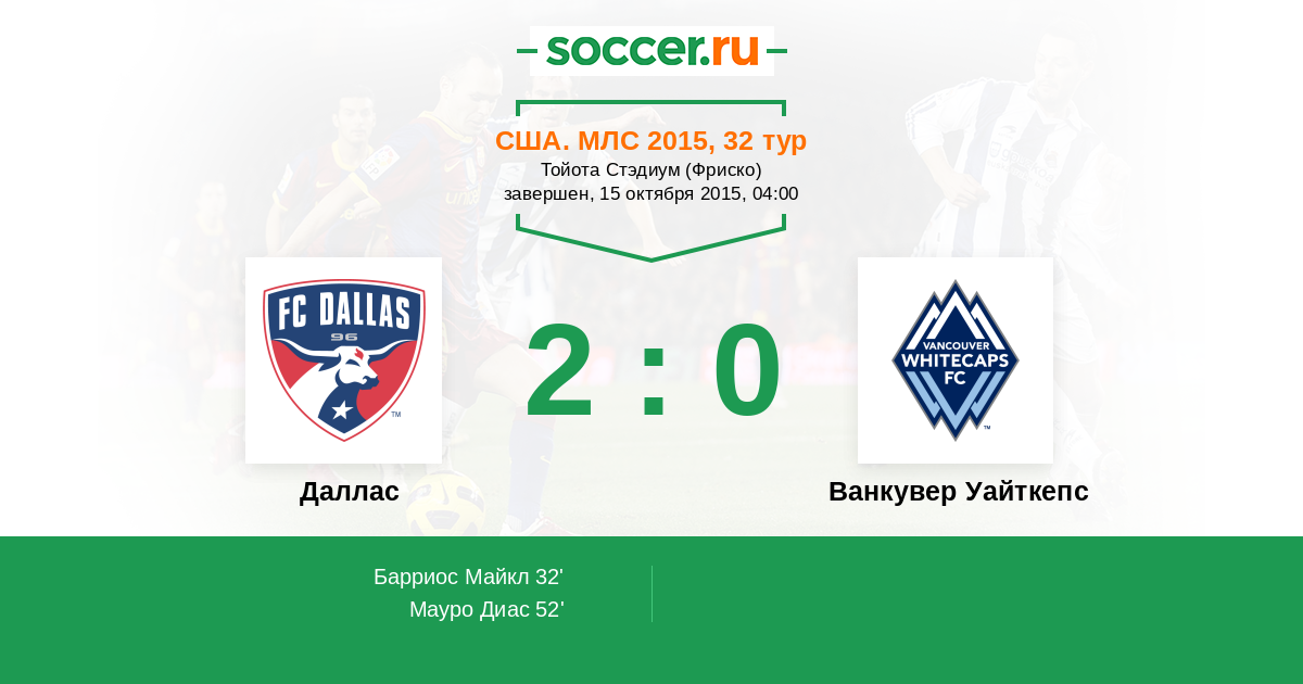 Протокол матча Даллас против Ванкувер Уайткепс