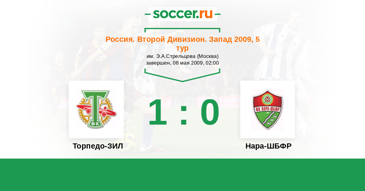 Россия. Вторая лига. Группа 2 21.08.2009 Нара-ШБФР Логотип футбольный клуб Нара-ШБФР (Наро-Фоминск) 0:1 Логотип футбольный клуб Торпедо-ЗИЛ (Москва) Торпедо-ЗИЛ