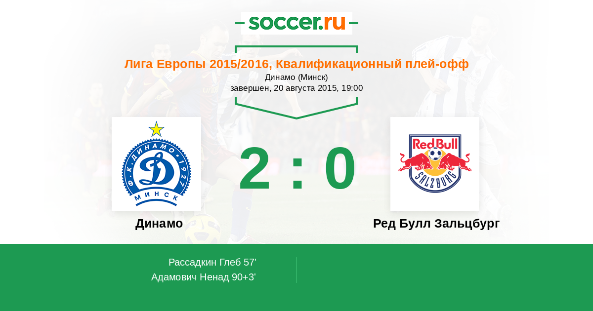 Протокол матча Динамо против Ред Булл Зальцбург