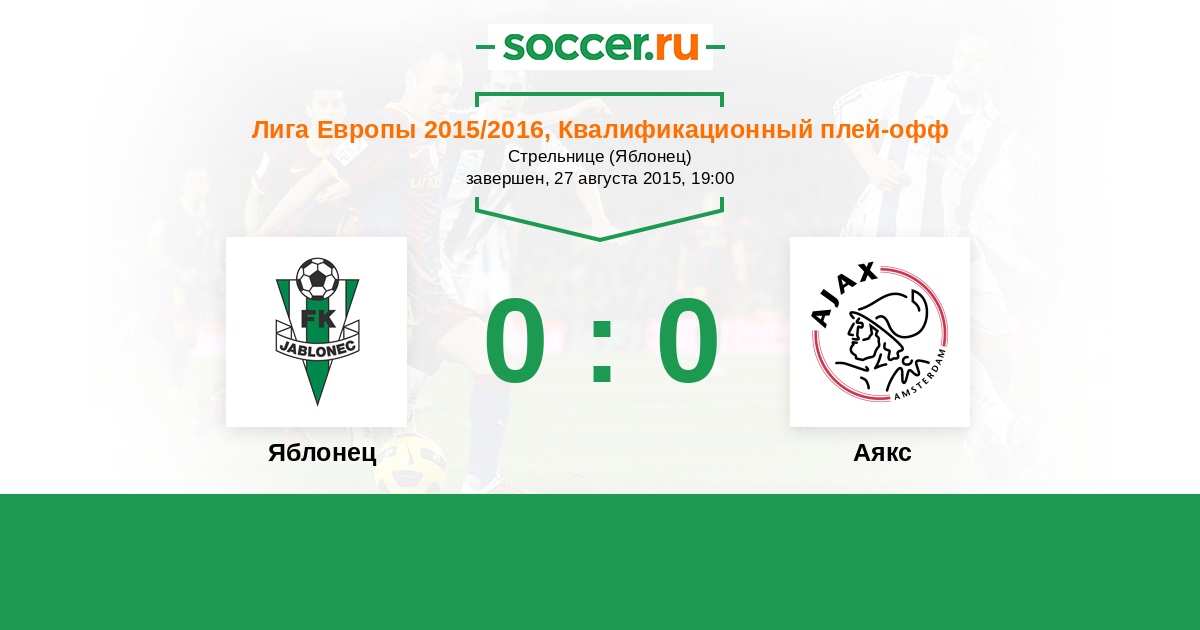 Протокол матча Яблонец против Аякс