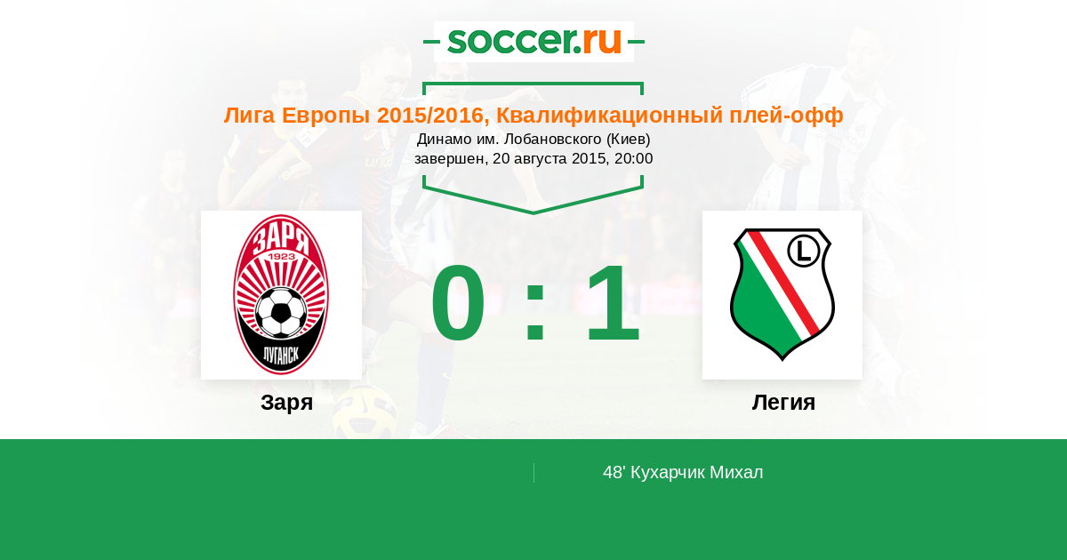 Протокол матча Заря против Легия