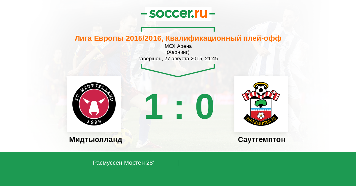 28' (1:0) Расмуссен Мортен (9) (Нильсен Кристиан (32))