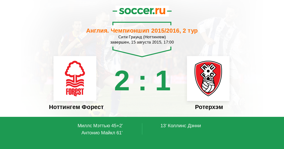 Протокол матча Ноттингем Форест против Ротерхэм