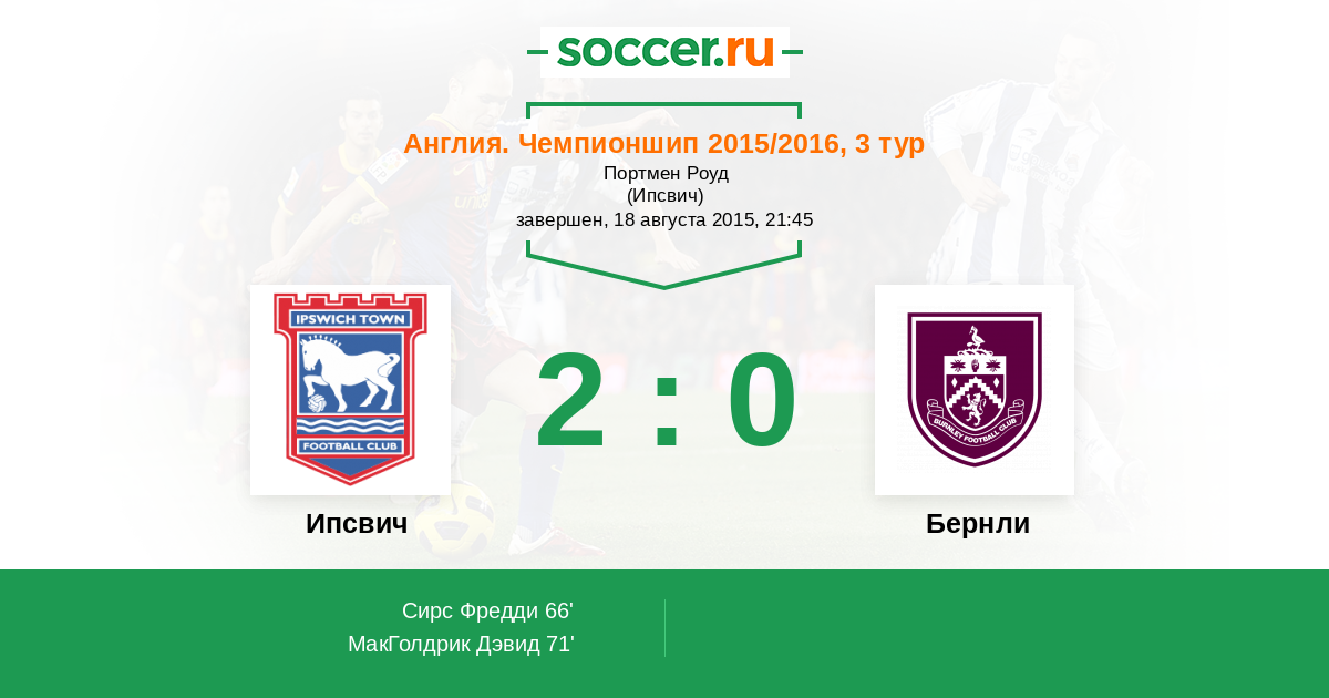 66' (1:0) Сирс Фредди (20) (Брэтт Питмен (11))