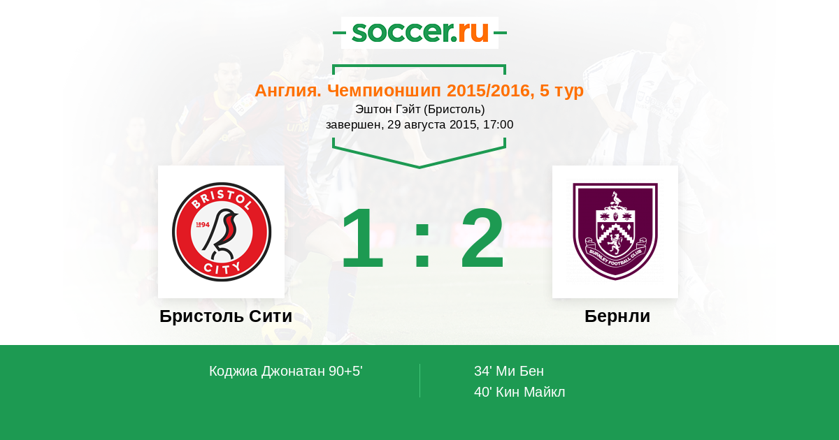 Протокол матча Бристоль Сити против Бернли