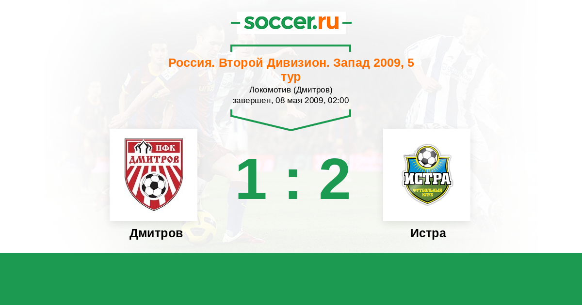 Россия. Вторая лига. Группа 2 21.08.2009 Истра Логотип футбольный клуб Истра 2:1 Логотип футбольный клуб Дмитров Дмитров