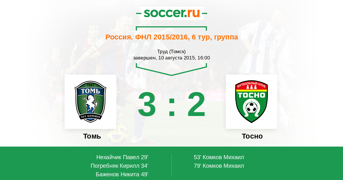 Протокол матча Томь против Тосно