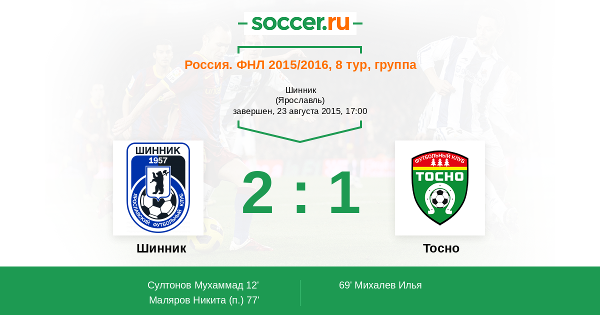 Протокол матча Шинник против Тосно
