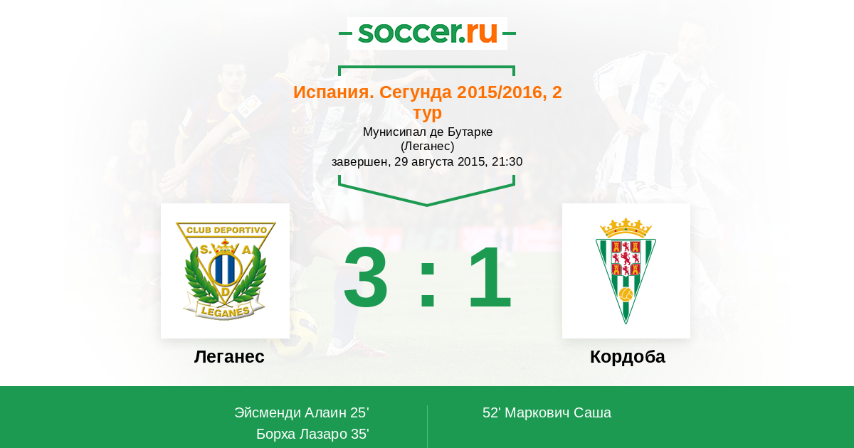 Протокол матча Леганес против Кордоба