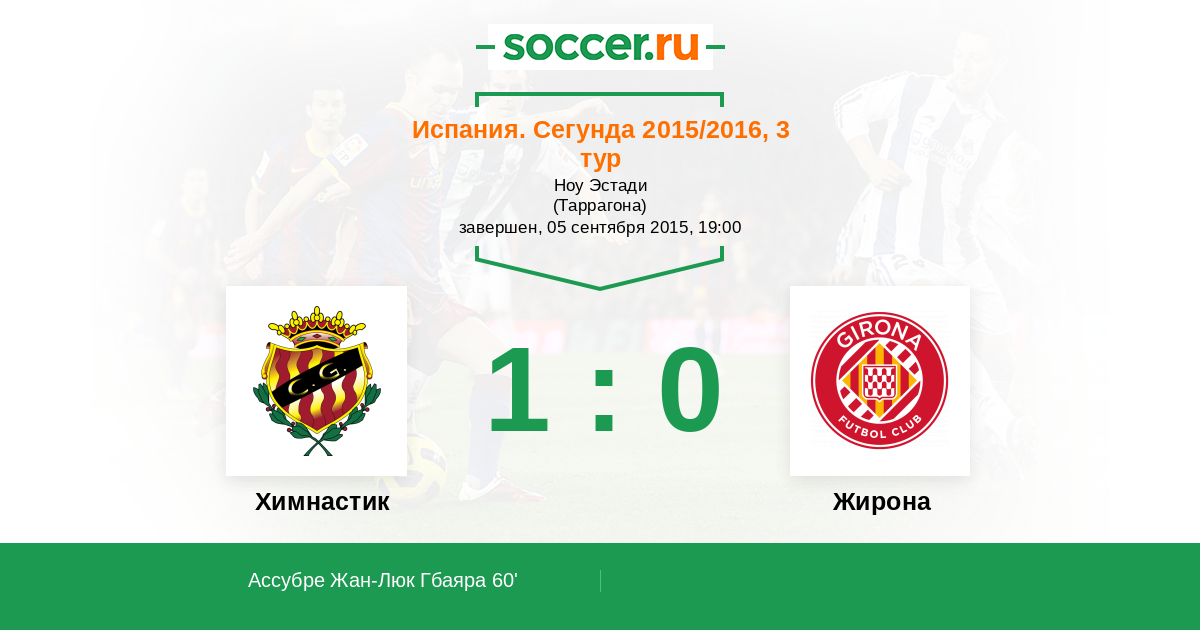 Протокол матча Химнастик против Жирона