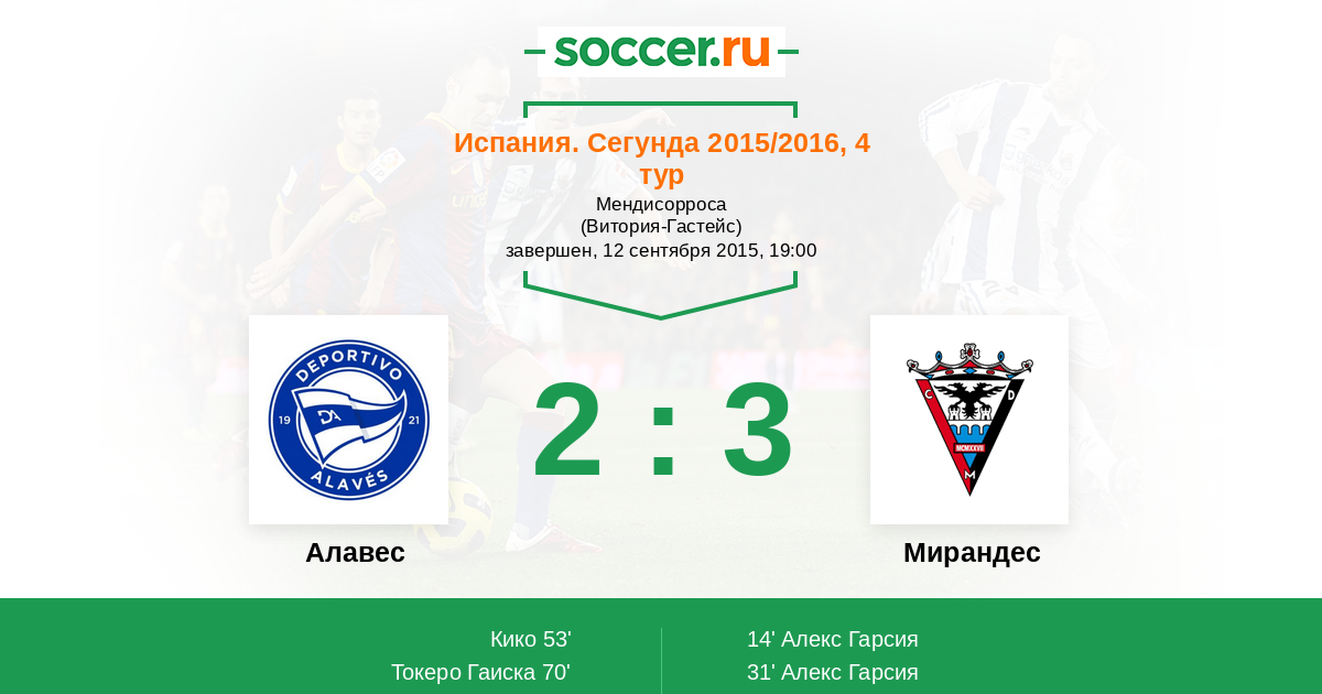Протокол матча Алавес против Мирандес