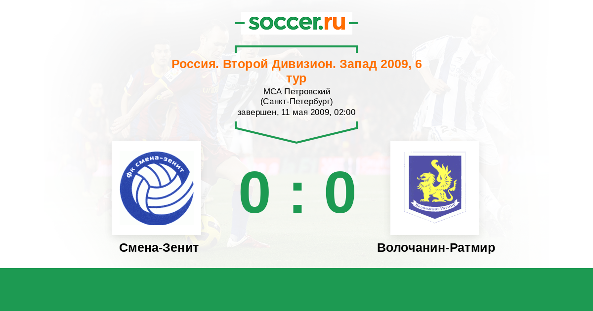 Россия. Вторая лига. Группа 2 31.10.2009 Локомотив-2 Логотип футбольный клуб Локомотив-2 (Москва) 0:2 Логотип футбольный клуб Смена-Зенит (Санкт-Петербург) Смена-Зенит