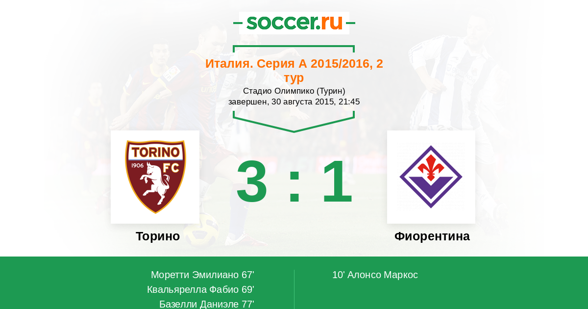 Протокол матча Торино против Фиорентина